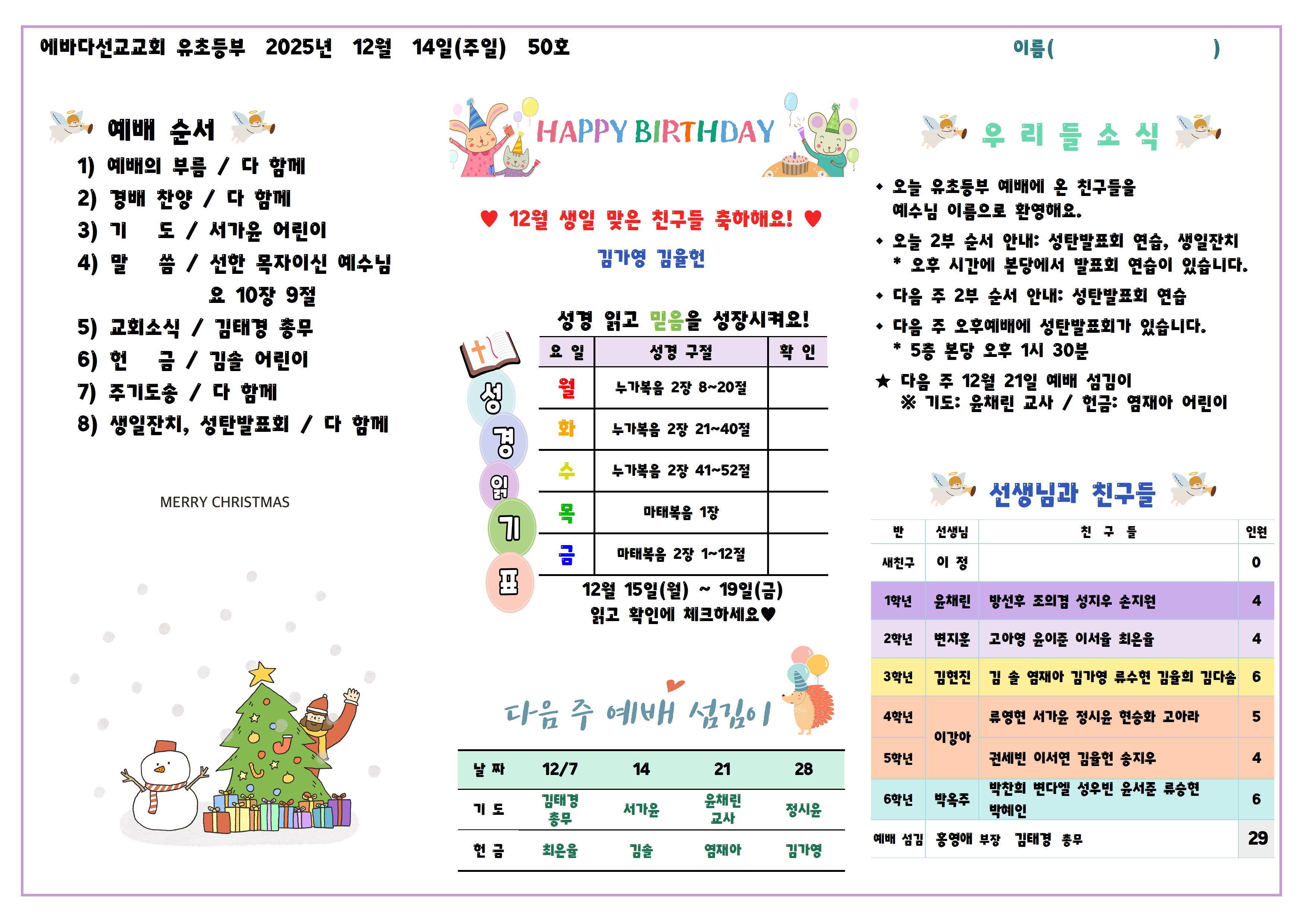 2025년 12월 14일 둘째 주 소식 이정 2025-12-11 추천 1 댓글 0 조회 2 http://www.ebd.or.kr/bbs/bbsView/82/6587100 첨부파일 (0) 1