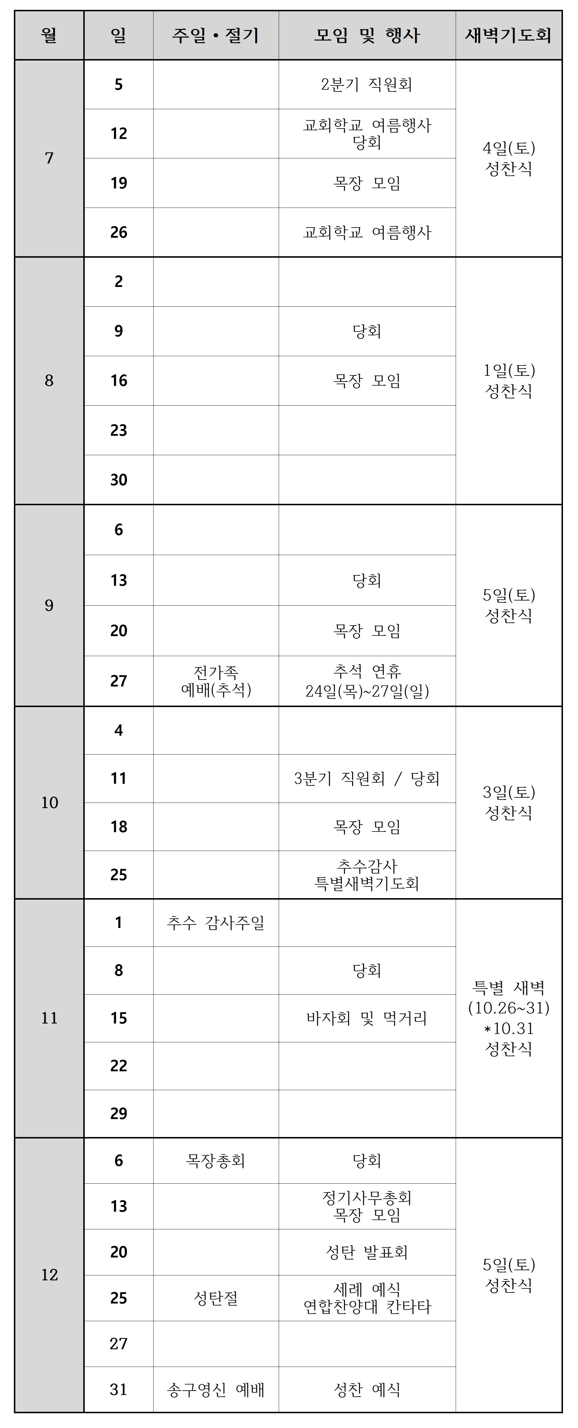 2026년 주일 행사